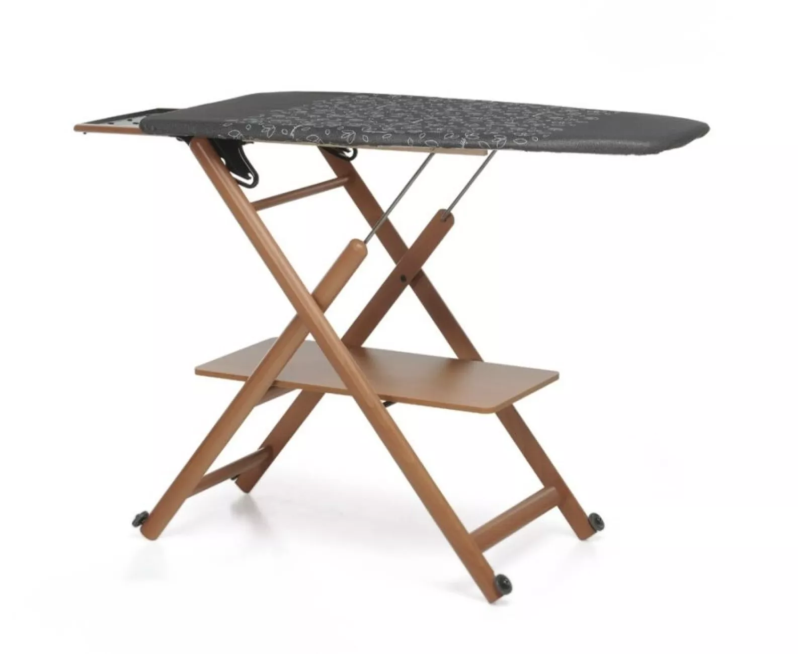 Assai 4.0 міцна, але легка, її легко переміщати завдяки практичним коліщаткам, які не дряпаються, а в закритому стані вона стоїть самостійно, займаючи дуже мало місця, і може бути розміщена в будь-якому місці. Він дуже практичний і функціональний, пристосований до будь-яких потреб: прасувальна дошка з дихаючими отворами, що запобігають утворенню конденсату, регулюється на трьох висотах для максимального комфорту. Має зручну нижню полицю для білизни.