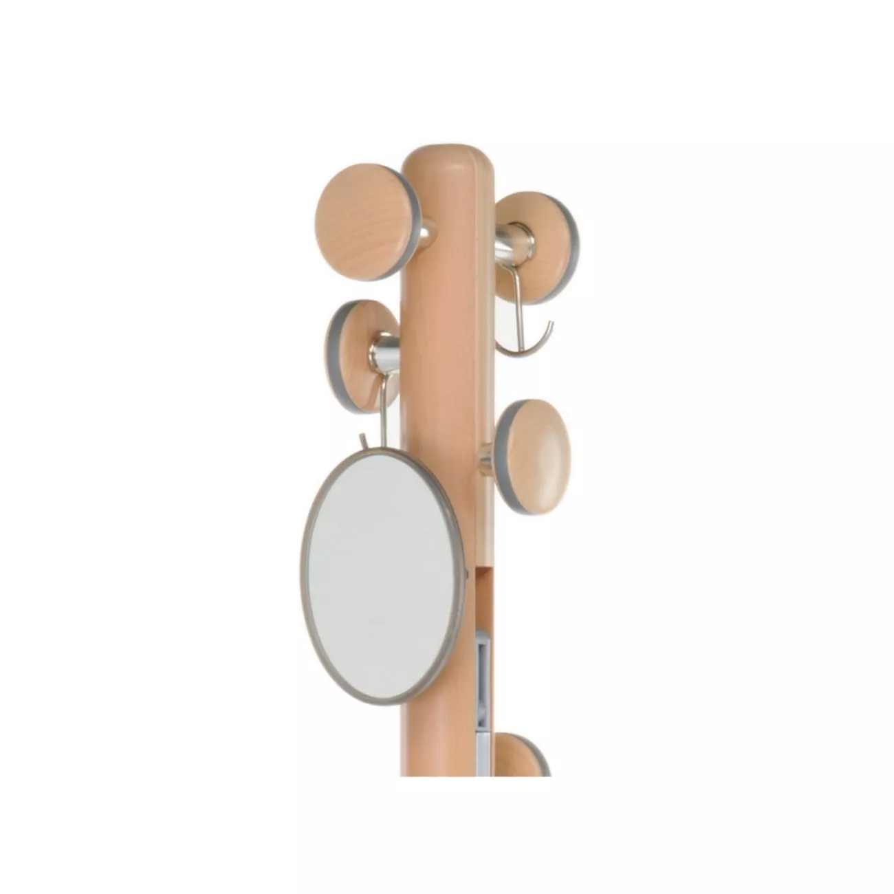 Матеріали: дерево бук, тоноване водоемульсійні лаком, алюміній, круглі дзеркала, пластик, сталь.