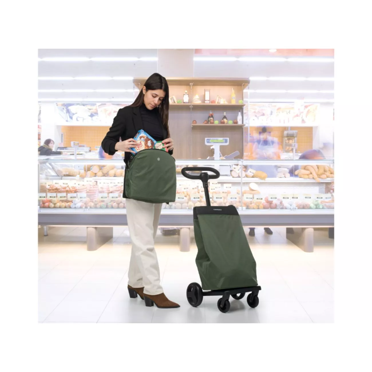 Сумка на колесах складана GO GO Foppapedretti це легкий і компактний складаний візок для покупок, у неї регульована телескопічна ручка. Сумка для покупок має два відділення та термосумку, яку можна використовувати окремо, так як вона легко знімається. Сумка для покупок легко складається та займає дуже мало місця.