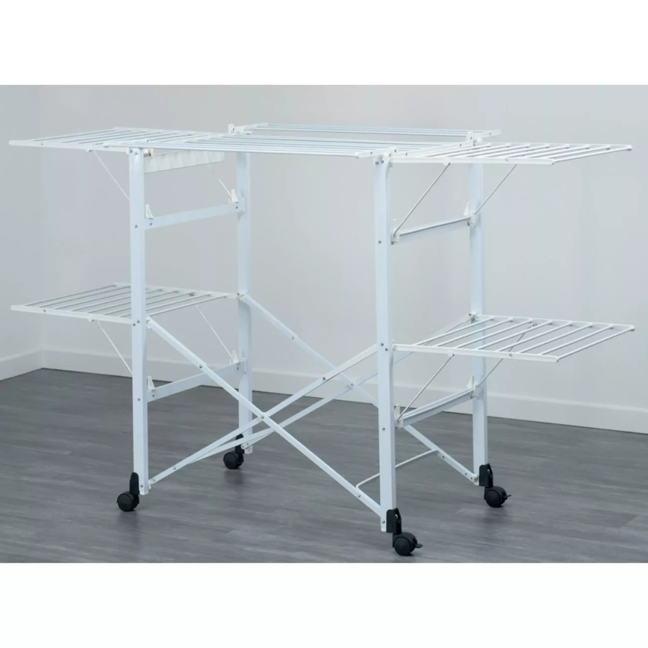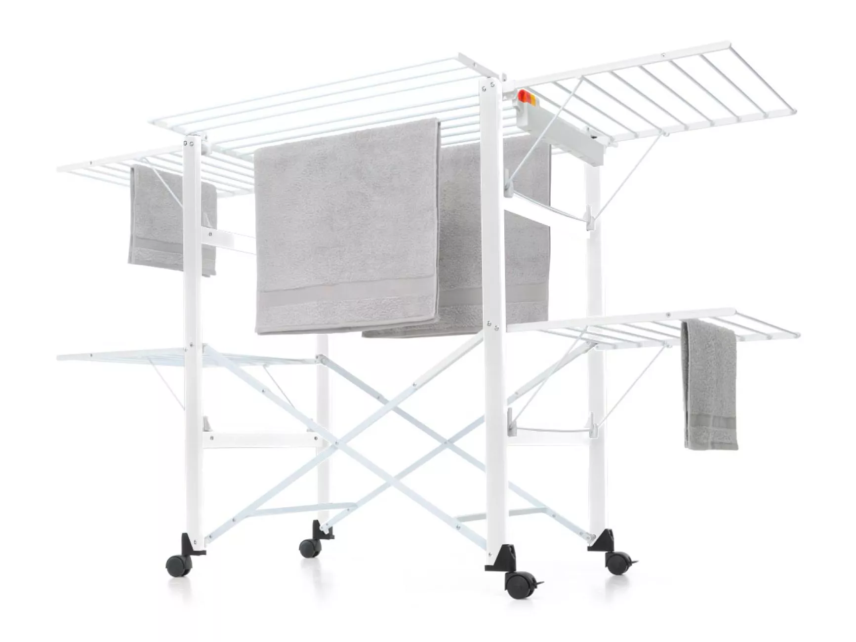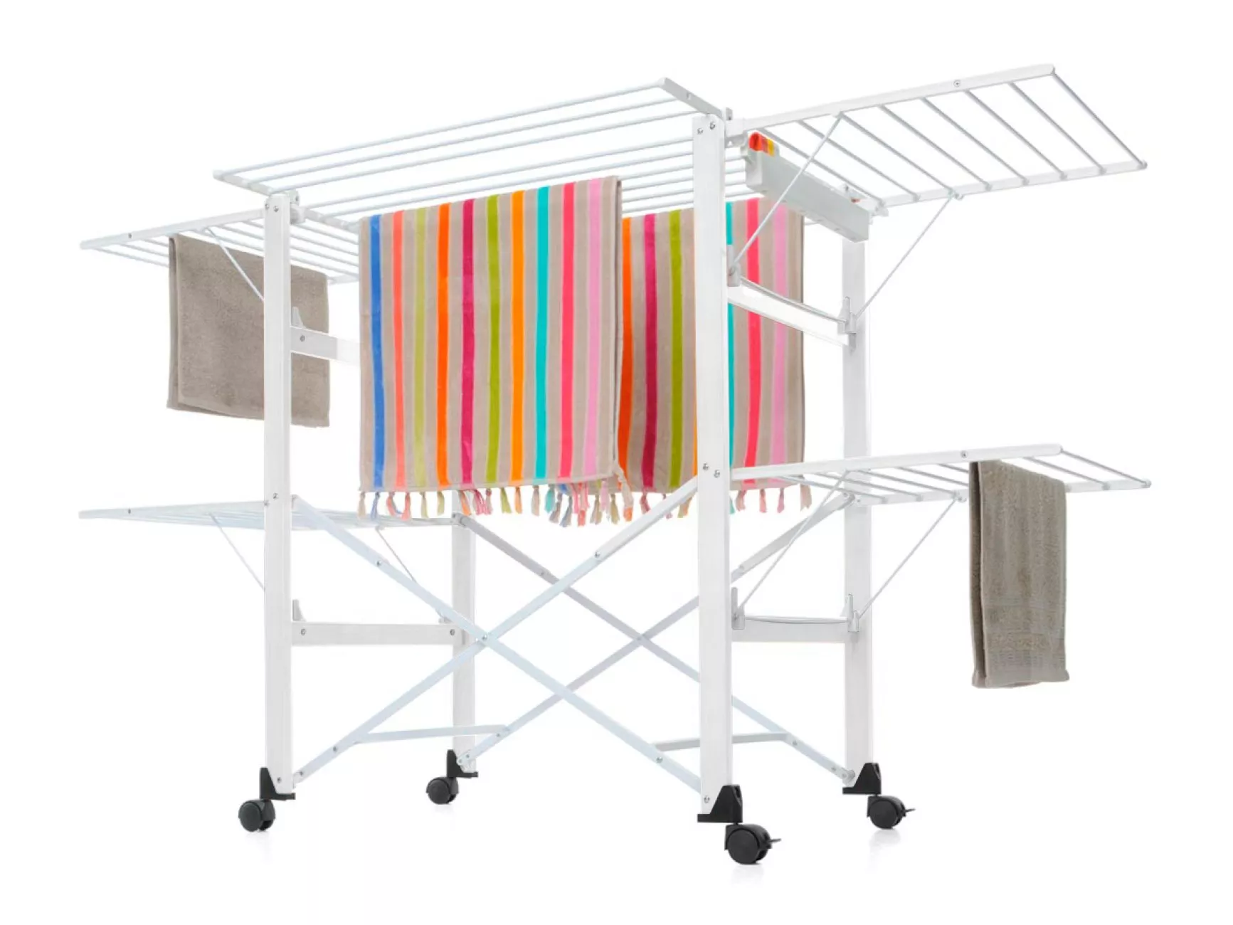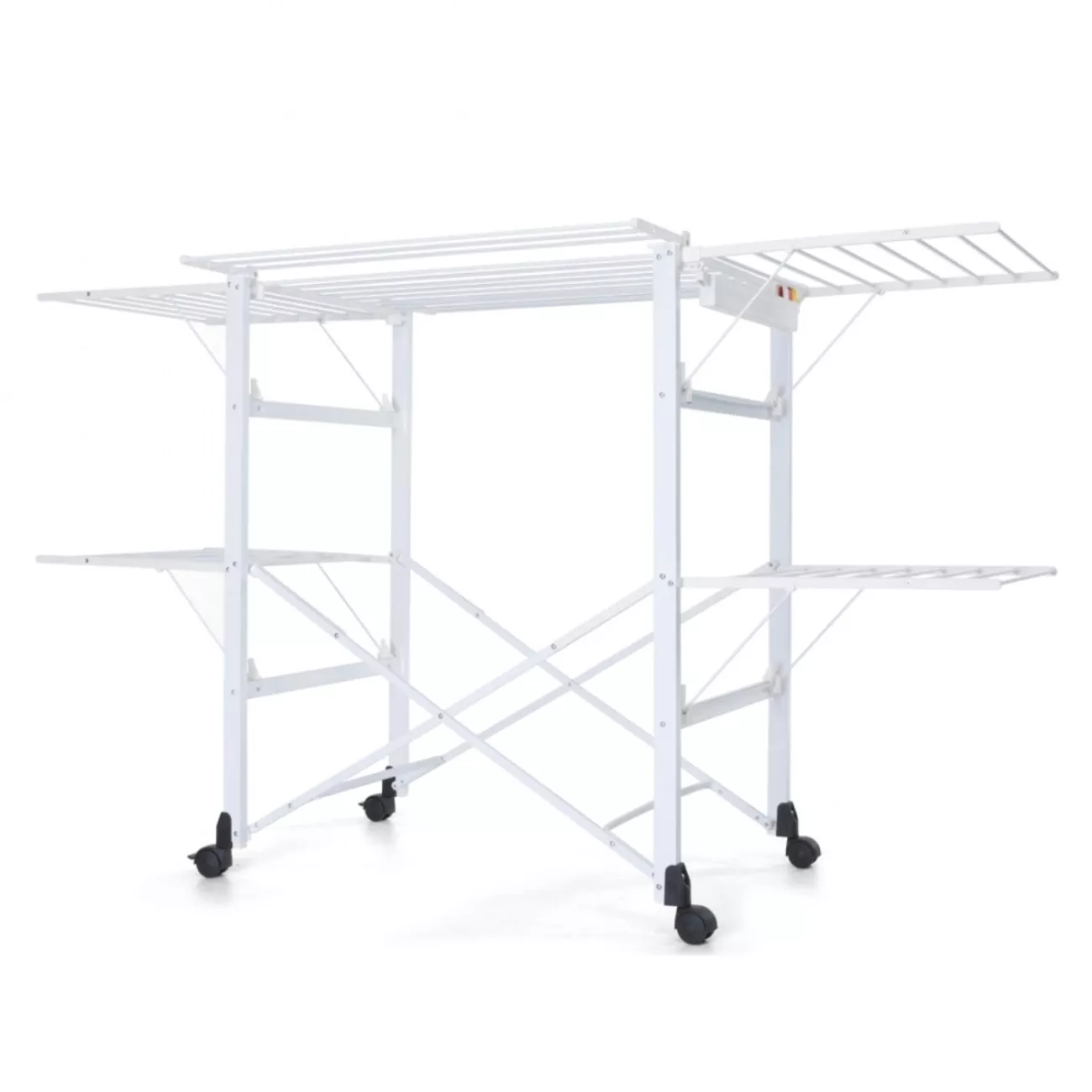 Товщина алюмінієвих стрижнів для розвішування білизни дозволяє уникнути заломів на тканині, що значно спрощує процес прасування. Бічні та фронтальні «крила» – відкриваються в залежності від кількості речей, які необхідно висушити.