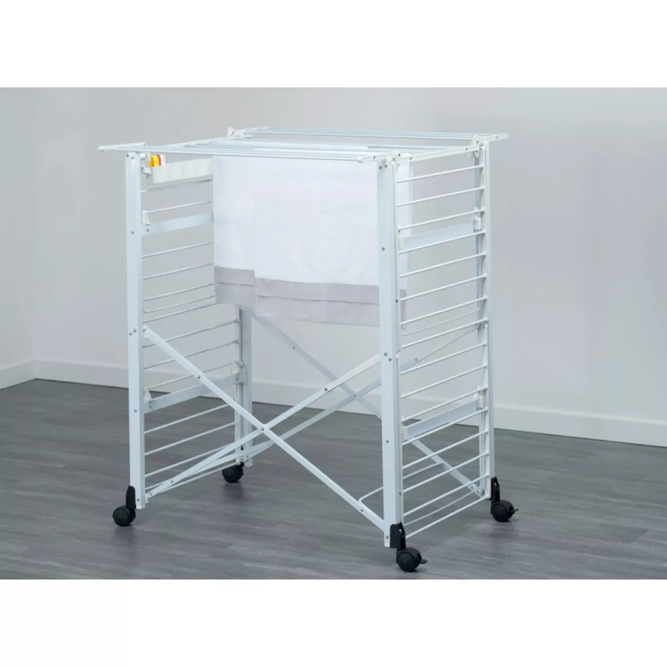 Сушарка для білизни Гулівер переміщається на коліщатках, стійкість забезпечена фіксаторами.