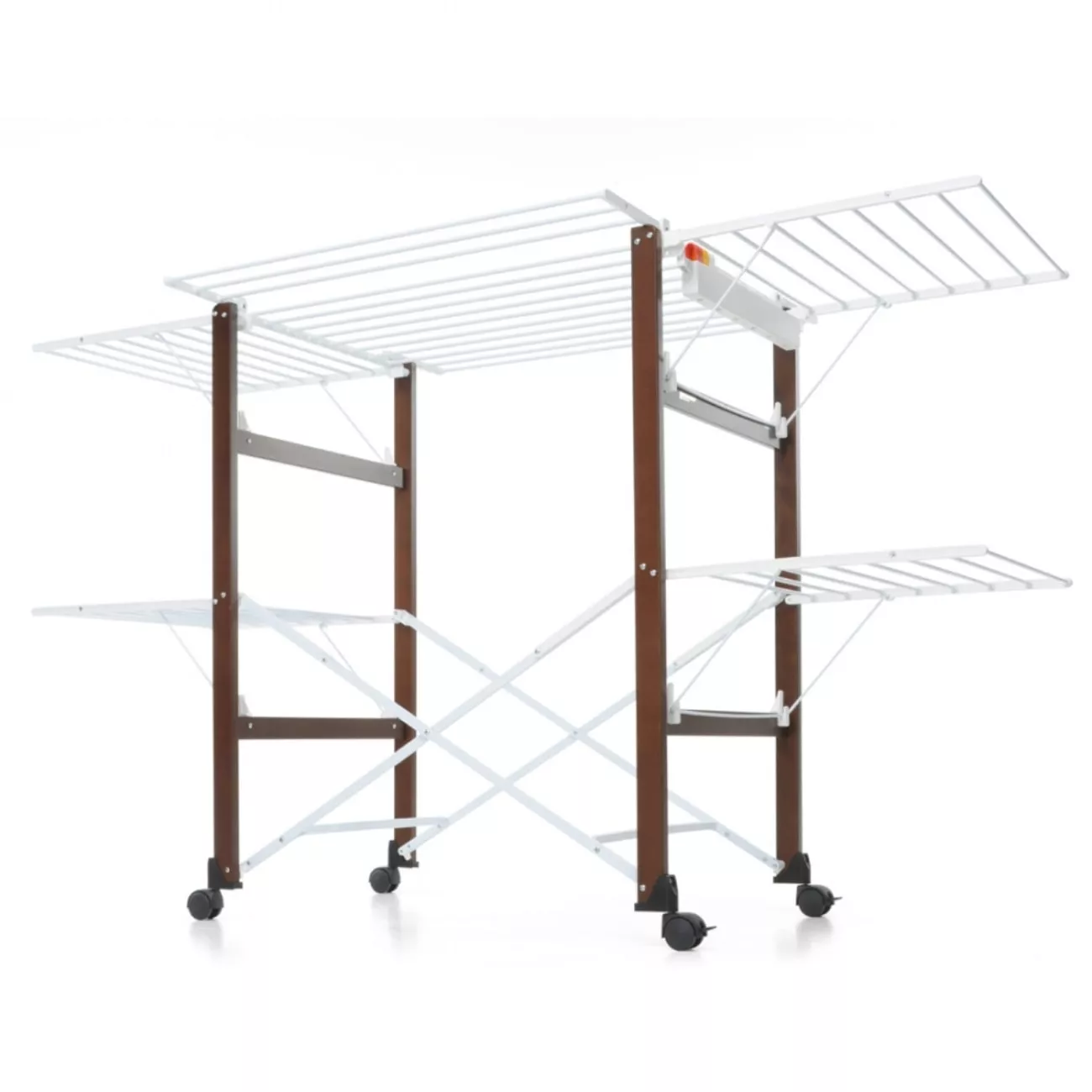 Товщина алюмінієвих стрижнів для розвішування білизни дозволяє уникнути заломів на тканині, що значно спрощує процес прасування. Бічні та фронтальні «крила» – відкриваються в залежності від кількості речей, які необхідно висушити.