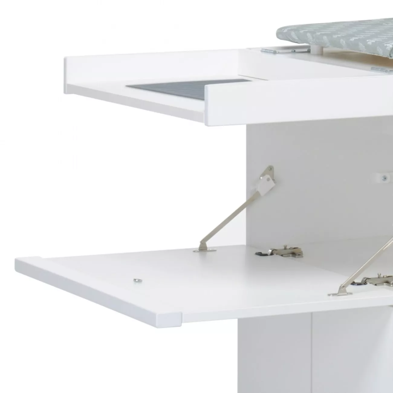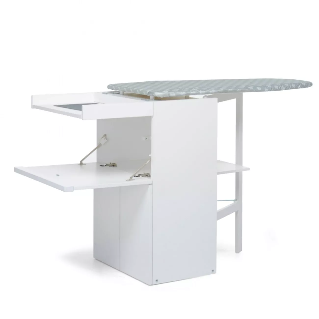 Прасувальна система, яка зручно складається у компактну тумбу. Прасувальна дошка оснащена полицями. У складеному вигляді зручно переміщається на гумових коліщатках. Заощаджує час прасування в 2 рази. Чохол полотна має антипригарні властивості.