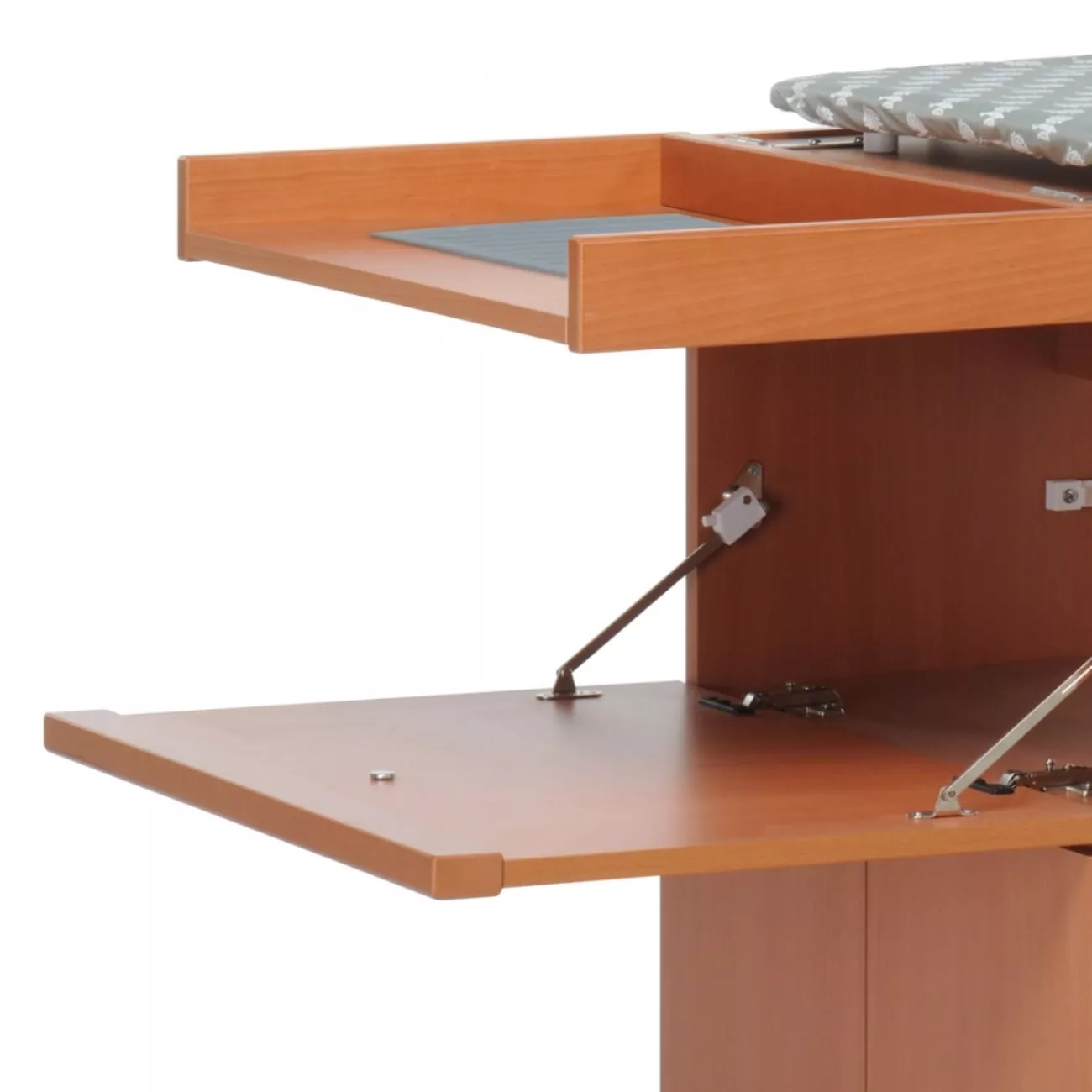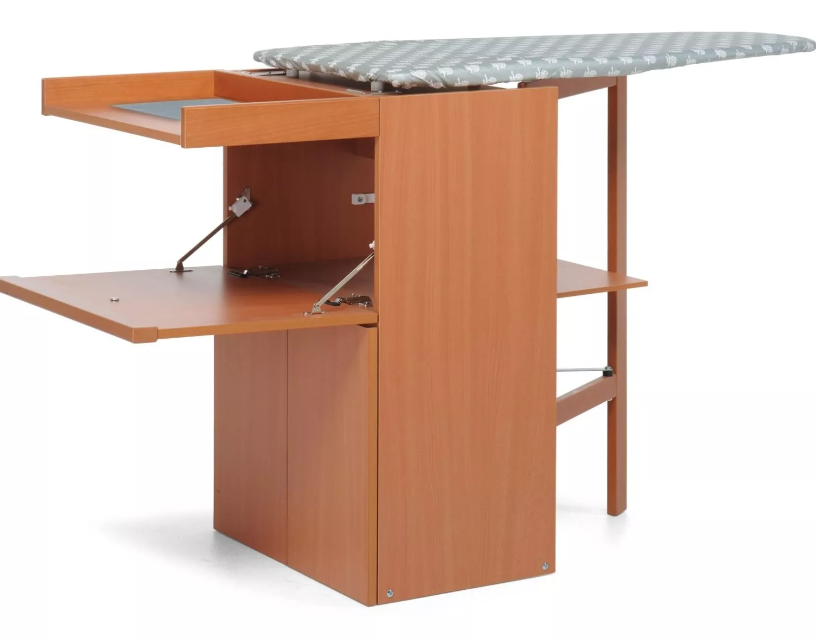 Прасувальна система, яка зручно складається у компактну тумбу. Прасувальна дошка оснащена полицями. У складеному вигляді зручно переміщається на гумових коліщатках. Заощаджує час прасування в 2 рази. Чохол полотна має антипригарні властивості.