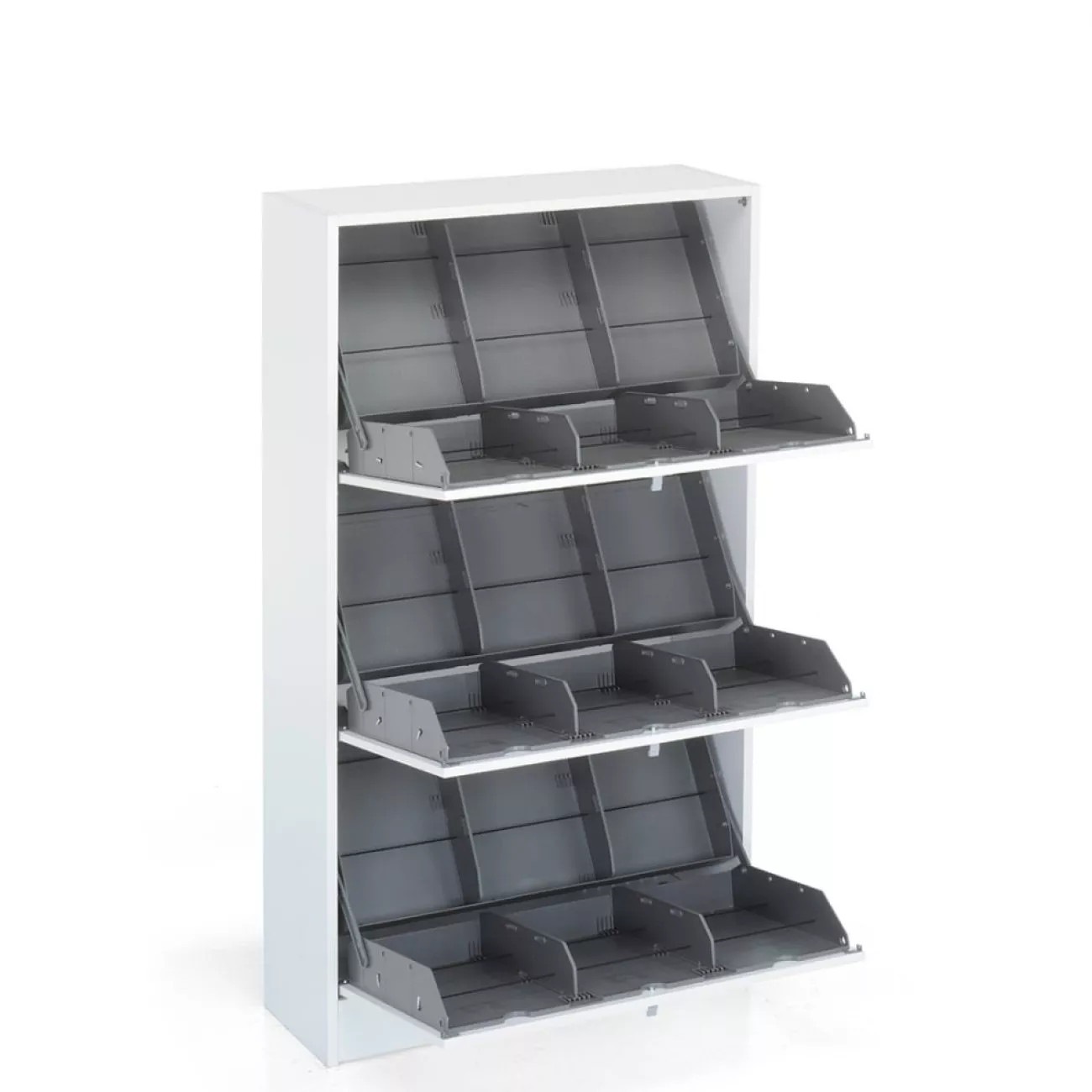 Для обеспечения максимальной функциональности Cenerentola имеет легко моющиеся лотки, с эластичными упорами для обуви, открыванием с помощью прилагаемых ручек и регулируемым разделителем по ширине, позволяющим адаптировать отсек под размер обуви.