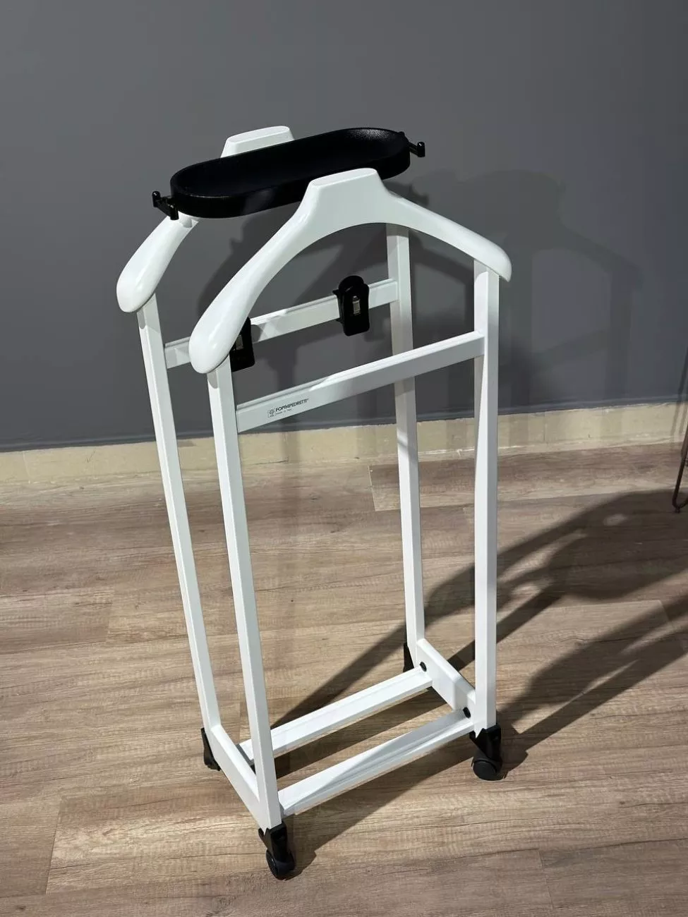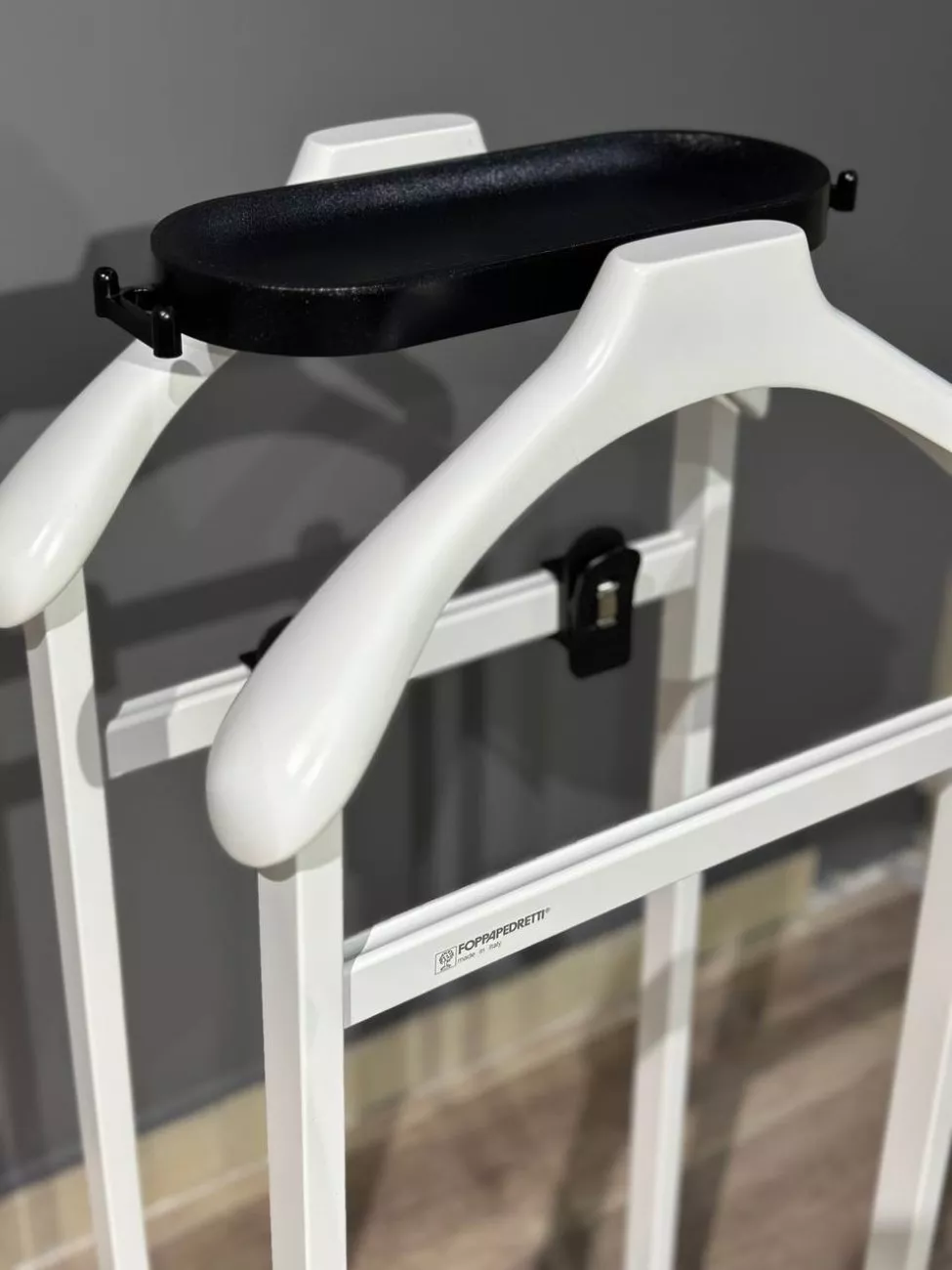 Двойная вешалка для одежды (вешалка слуга, вешалка с прищепками, деревянная напольная вешалка, стойка для одежды с полочкой, для костюмов) iLmettinsieme bianco Foppapedretti