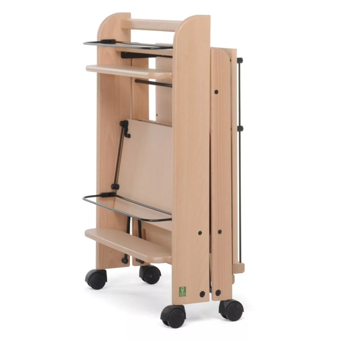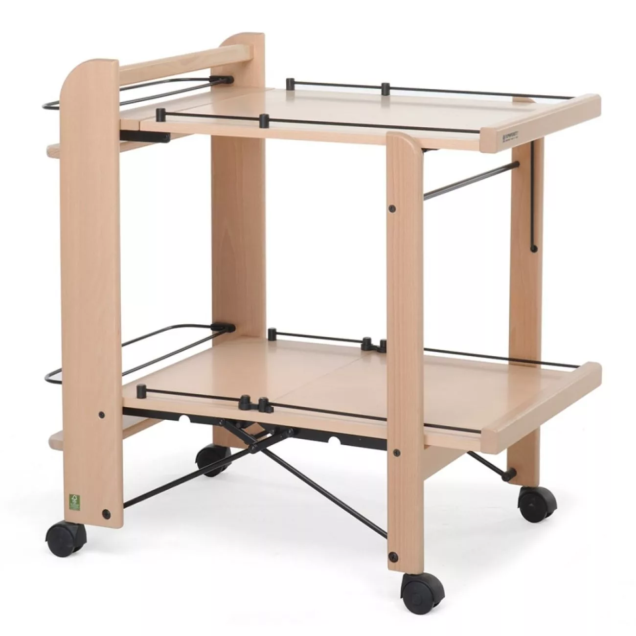Сервировочный столик складной. Стоик «Сервиче» не только удобный и функциональный, - его дизайн удачно дополнит интерьер Вашего дома. Столик Service выполнен из дерева бук, с элементами ламинированного ДСП, борты на полках выполнены из стали. Все сервировочные столики от «Фоппапедретти» удобно перемещаются на колесиках, а в сложенном состоянии занимают минимум места. Столик Service  складывается и раскладывается очень удобно, в сложенном виде полочки остаются в фиксированном положении, они позволяют всегда иметь необходимые предметы под рукой (например, бутылки). Каждая полка выдерживает максимальный вес 5 кг.
