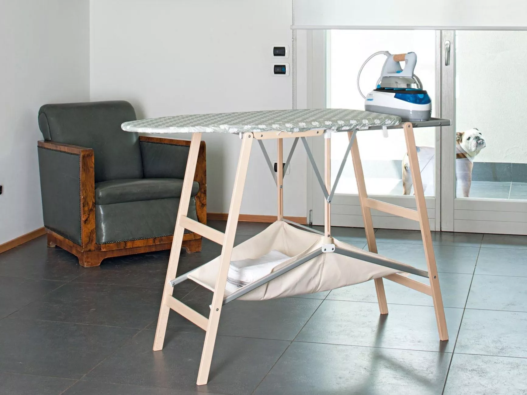 Деревянная гладильная доска-трансформер. Stretching – новинка Foppapedretti, в складном состоянии занимает 15 см. Экономит время глажки в 2 раза. Доска устойчива во время интенсивной глажки. Под рабочей поверхностью размещен хлопчатобумажная сумка для поглаженного белья.