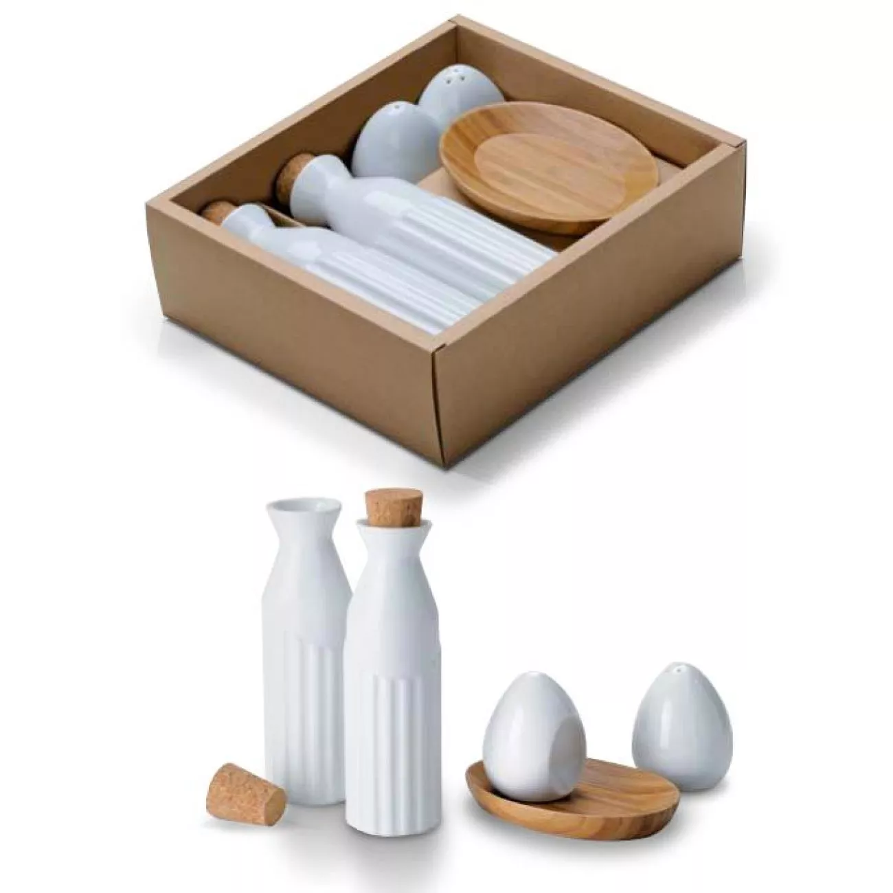 Набір для сервірування столу. Подарунковий кухонний набір для спецій та соусів SAVEUR від Foppapedretti. Матеріали бутчлочок – кераміка. Підставки - дерево бамбук, кришечки - коркове дерево.