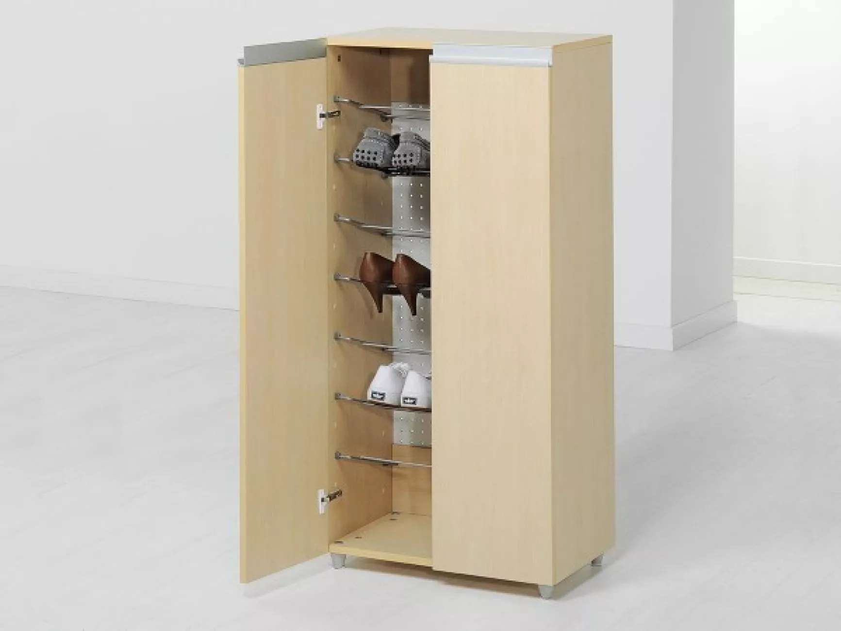 Містка тумба для взуття з 7 знімними полицями-тримачами, перфорованою задньою стінкою для вентиляції.